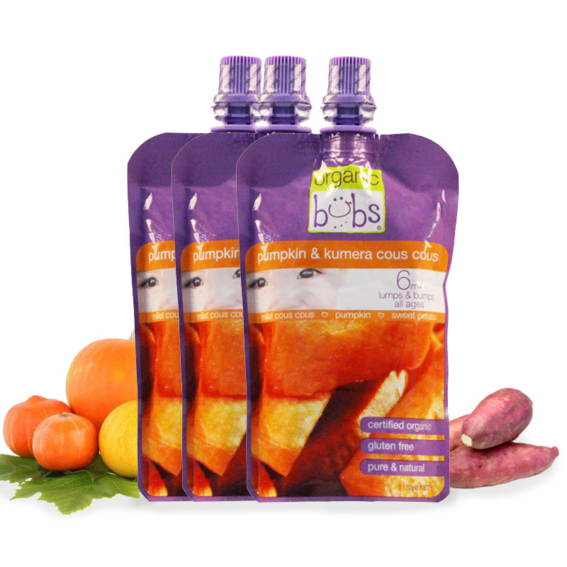 澳大利亚Bubs贝儿有机南瓜、甘薯、古斯米泥宝宝辅食 120g*3袋装