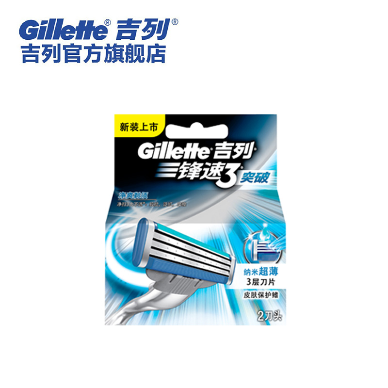 吉列剃须刀片锋速3突破手动刮胡刀刀头(2刀片/头)