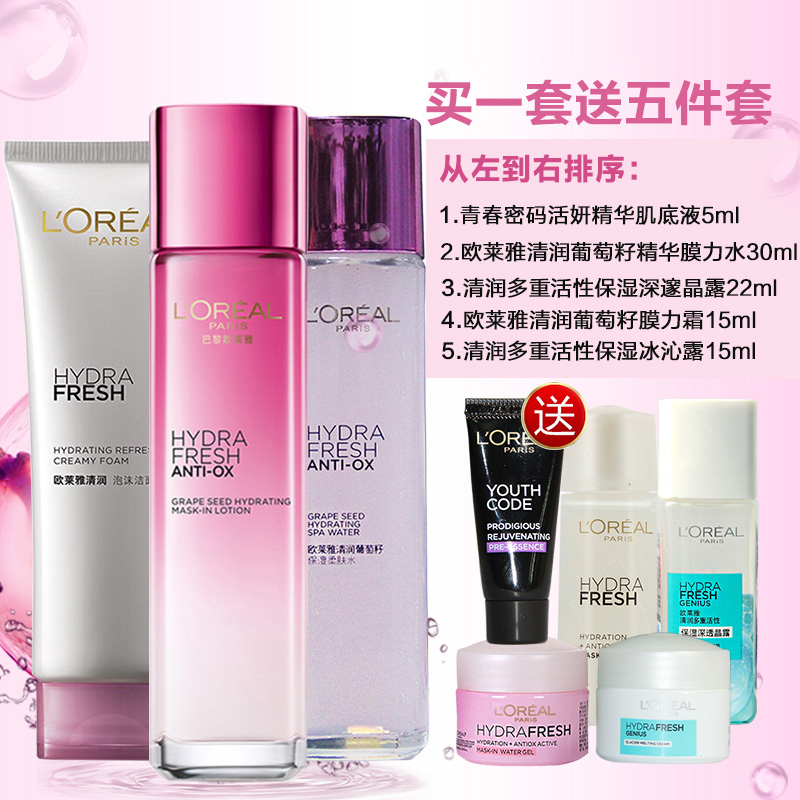 欧莱雅女士清润葡萄籽系列套装膜力精华水泡沫洗面奶全日保湿乳液