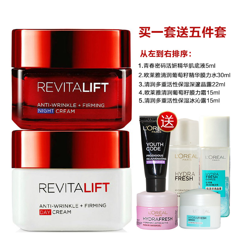 欧莱雅女士复颜抗皱紧致滋润日霜50ml+复颜抗皱紧致滋润晚霜套装