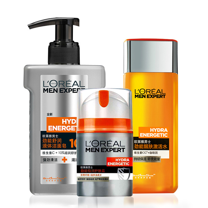 欧莱雅男士套装 劲能极润护肤霜 醒肤激活水 液体洁面皂 洗面奶