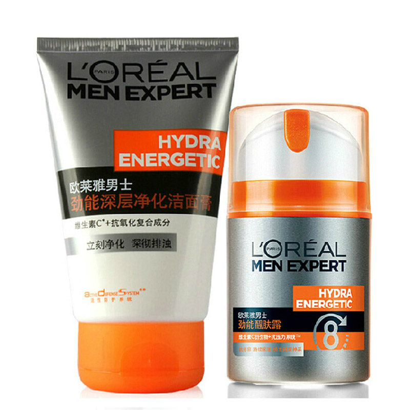 欧莱雅男士套装深层净化洗面奶100ml+劲能醒肤露8重功效