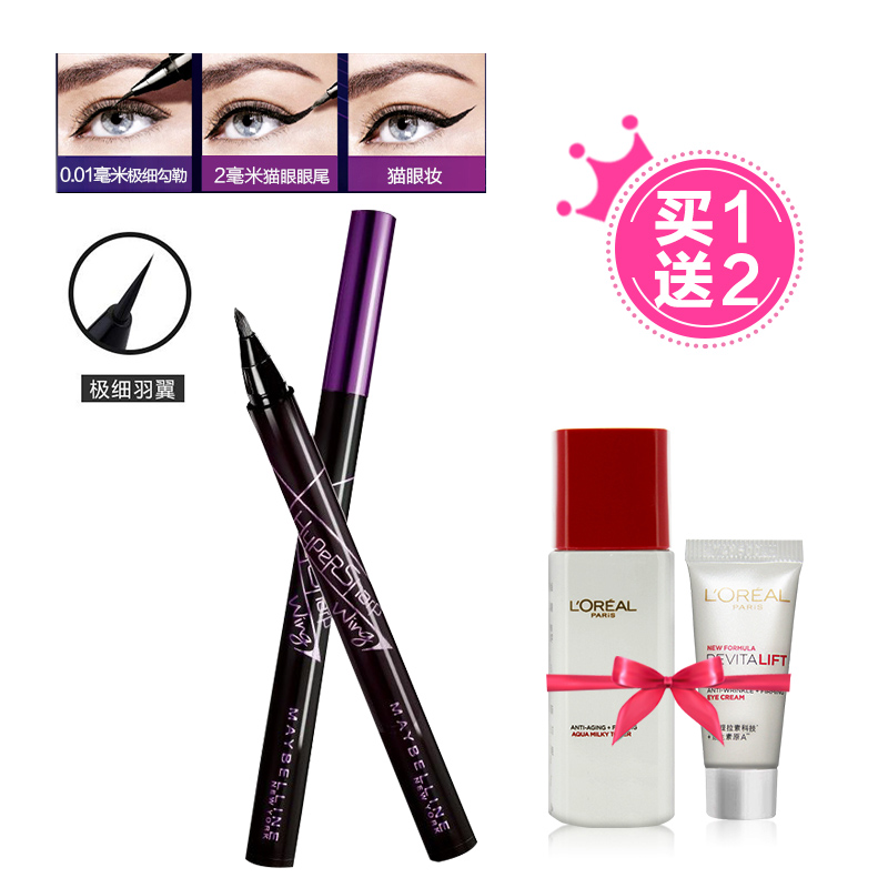 美宝莲极细易画眼线笔液体膏羽翼版浓密纤长卷翘防水持久不易晕染