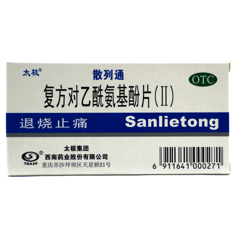 产品剂型:片剂 药品分类:非处方药 有效期:60个月 用法:口服 类别:复方制剂 品牌:太极 适用人群:儿童.成人 使用剂量:儿童一次0.5~1片;成人一次1~2片,一日3次 疾病:风热感冒.风寒感冒 症状:头痛.肌肉痛.疼痛.发热.牙痛.关节痛.神经痛 药品名称:散列通 复方对乙酰氨基酚片(II) 药品商品名:散列通 药品通用名:复方对乙酰氨基酚片(II) 批准文号:国药准字H20013003 生产企业:太极集团西南药业股份有限公司 规格:10片/盒 查看全文