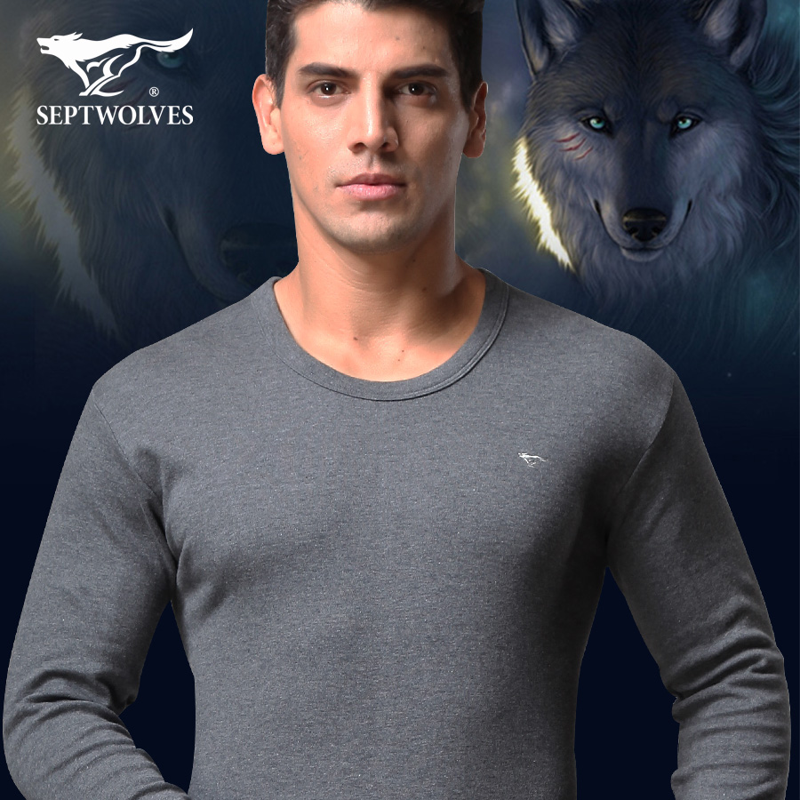 七匹狼男士纯棉秋衣秋裤套装 圆领全棉毛衫 中老年人薄款保暖内衣