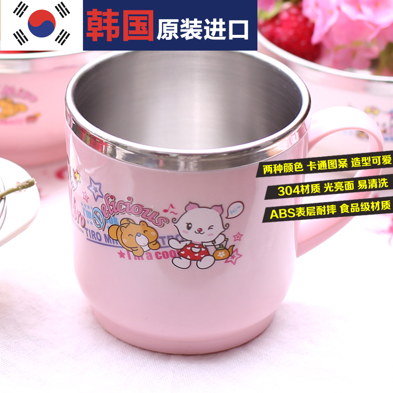 韩国TIROMIRO进口儿童的水杯学生学饮杯宝宝带柄婴幼儿不锈钢包邮