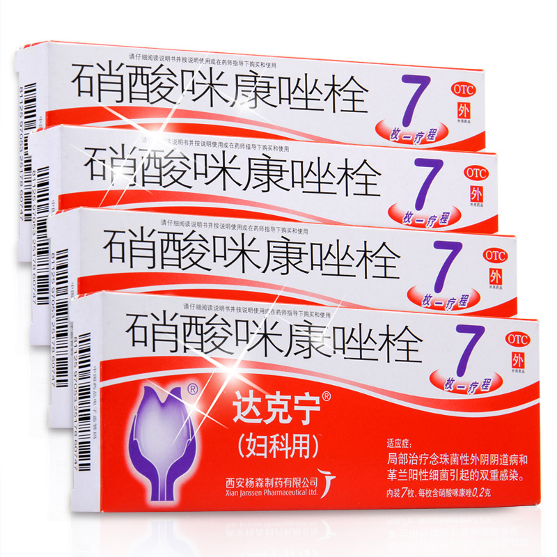 药品分类:非处方药 套餐类型:标准装 有效期:60个月 类别:化学药 适用人群:妇科 产品剂型:栓剂 用法:阴道给药 疾病:外阴炎 生产企业:西安杨森制药有限公司 症状:外阴瘙痒 使用剂量:每晚1次,一次1枚 品牌:达克宁 药品名称:硝酸咪康唑栓 药品商品名:达克宁 药品通用名:硝酸咪康唑栓 批准文号:国药准字H10930214 规格:0.2g*7枚/盒 查看全文