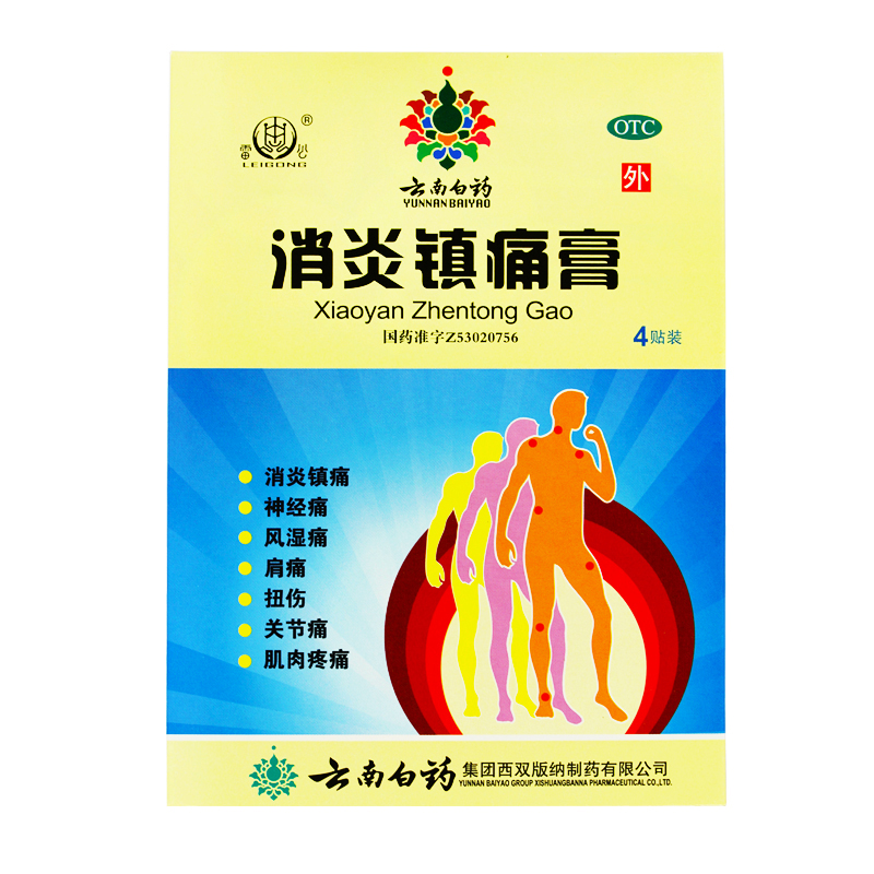品牌:云南白药 适用人群:不限 用法:皮肤外用 药品分类:非处方药 有效期:36个月 产品剂型:贴剂 类别:中药 使用剂量:一日1-2次 生产企业:云南白药集团股份有限公司 药品名称:消炎镇痛膏 药品通用名:消炎镇痛膏 症状:关节红肿.扭拉伤.瘀血肿痛 批准文号:国药准字Z53020756 疾病:外伤.神经痛.风湿骨痛 规格:4片/盒 查看全文