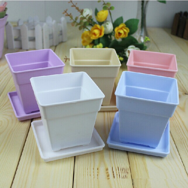 的热门产品促销 办公桌面绿植盆栽园艺塑料方形花盆 简易彩色树脂盆 送托盘