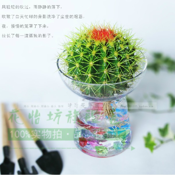 办公桌面水培花卉 仙人球盆栽 金琥球水培套装 防辐射吸甲醛