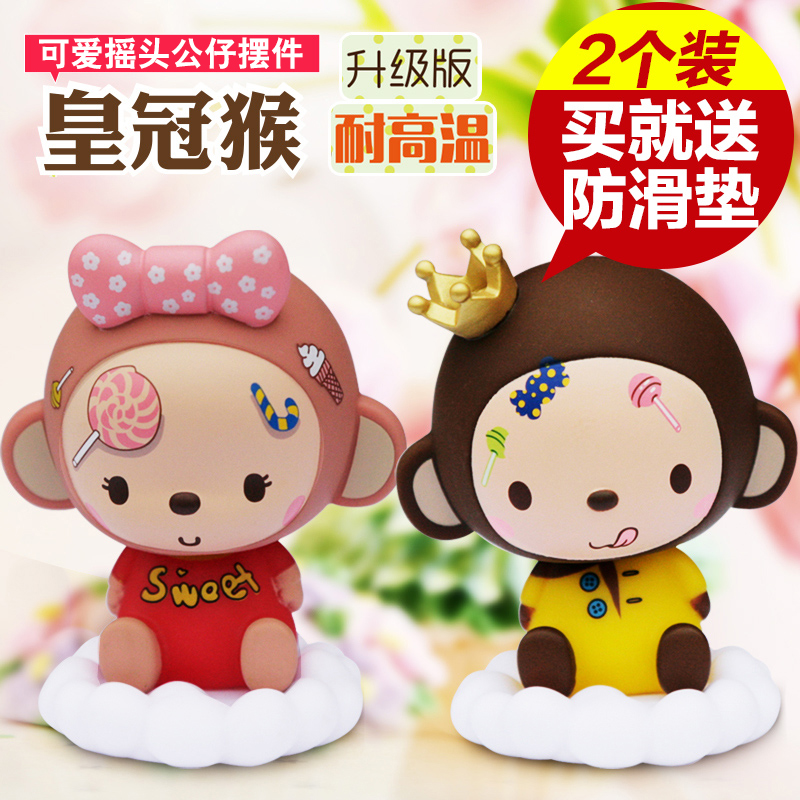 2个装 皇冠猴升级版汽车摆件 摇头公仔可爱创意卡通 车内饰品用品