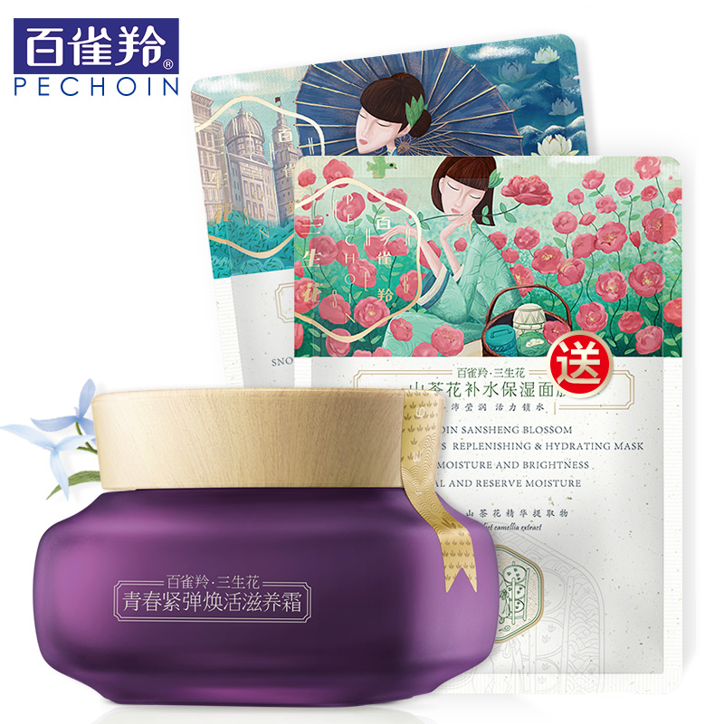 百雀羚面霜 三生花青春紧弹焕活滋养霜50g 补水紧致滋润保湿霜女