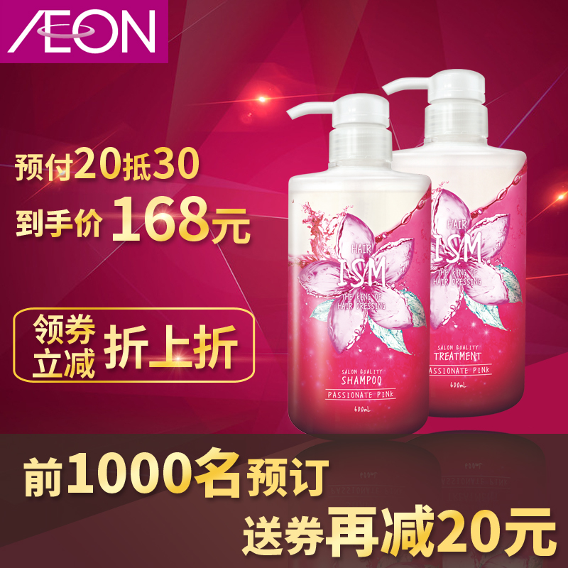 AEON日本进口ISM沙龙级无硅油洗发水护发素滋养修护套装热情粉红