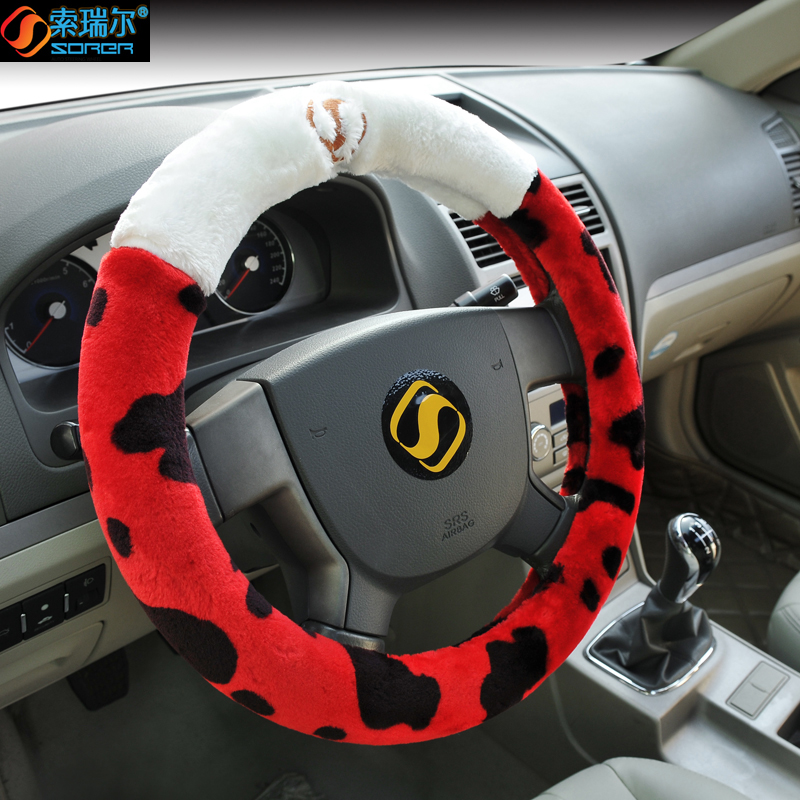 索瑞尔SR8522新款可爱毛绒奶牛花方向盘把套冬季通用款直径38M