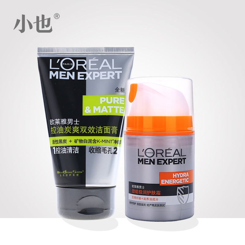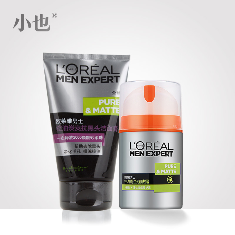 L'oreal/欧莱雅男士控油炭爽抗黑头洗面奶 周全理肤护肤套装正品