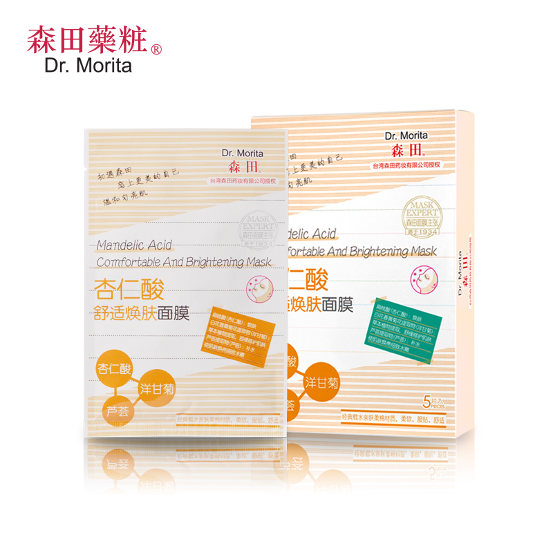 森田药妆杏仁酸舒适焕肤面膜5片 淡斑祛痘印面膜春夏补水提亮肤色