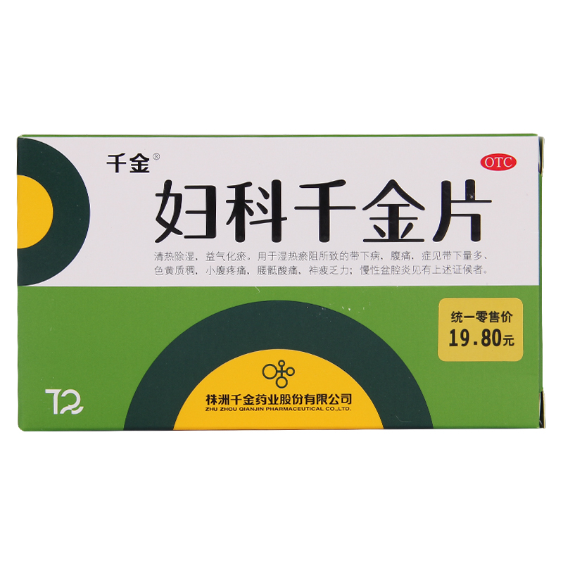 产品剂型:片剂 药品分类:非处方药 用法:口服 类别:中药 适用人群:妇科 有效期:30个月 品牌:千金 疾病:盆腔炎 药品名称:妇科千金片 药品通用名:妇科千金片 批准文号:国药准字Z43020027 生产企业:株洲千金药业股份有限公司 症状:带下量多.行经腹痛 使用剂量:一天3次,每次6片 规格:18片*4板/盒 查看全文