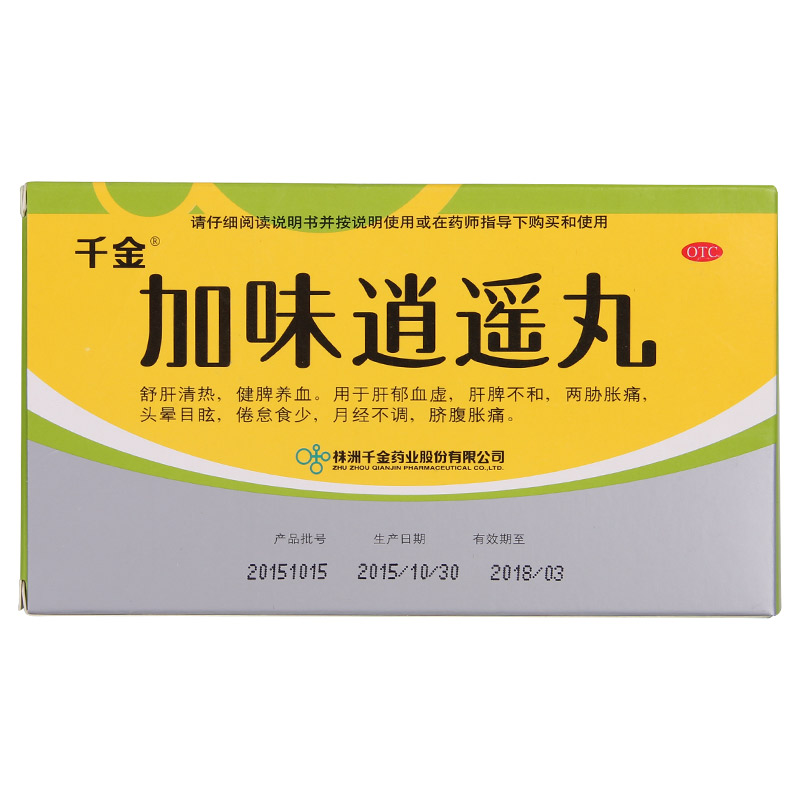 药品分类:非处方药 产品剂型:丸剂 用法:口服 类别:中药 规格:6g*10袋/盒 适用人群:妇科 有效期:30个月 药品名称:加味逍遥丸 药品通用名:加味逍遥丸 疾病:月经不调 品牌:千金 生产企业:株洲千金药业股份有限公司 使用剂量:一次6克,一日2次。 症状:经少.调经养颜.月经过多 批准文号:国药准字Z43020940 查看全文