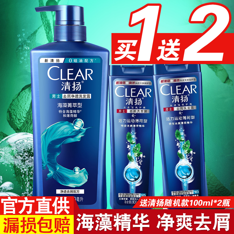 包邮清扬男士去屑洗发水净透洗发露海藻菁萃型无硅油洗发乳500ml