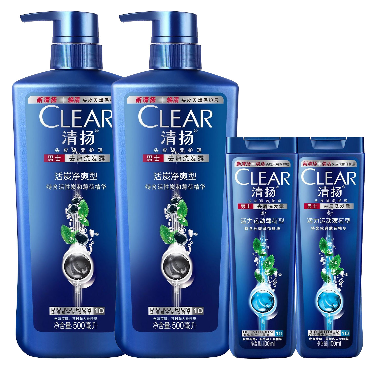 清扬男士去屑洗发水活炭净爽型500ml洗发露套装赠100ml洗发水*2瓶