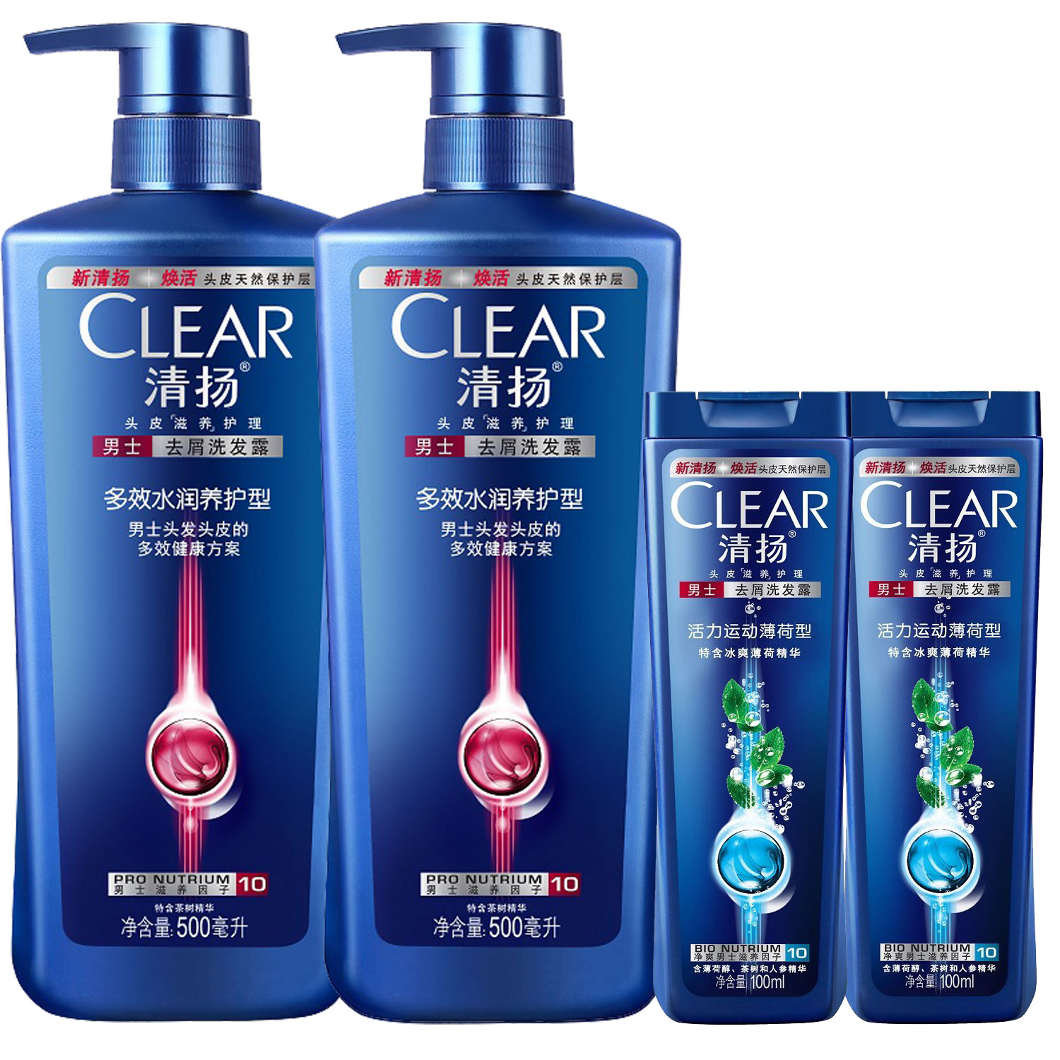 的热门产品清扬男士去屑洗发水多效水润型500ml洗发露套装赠100ml洗发水*2瓶
