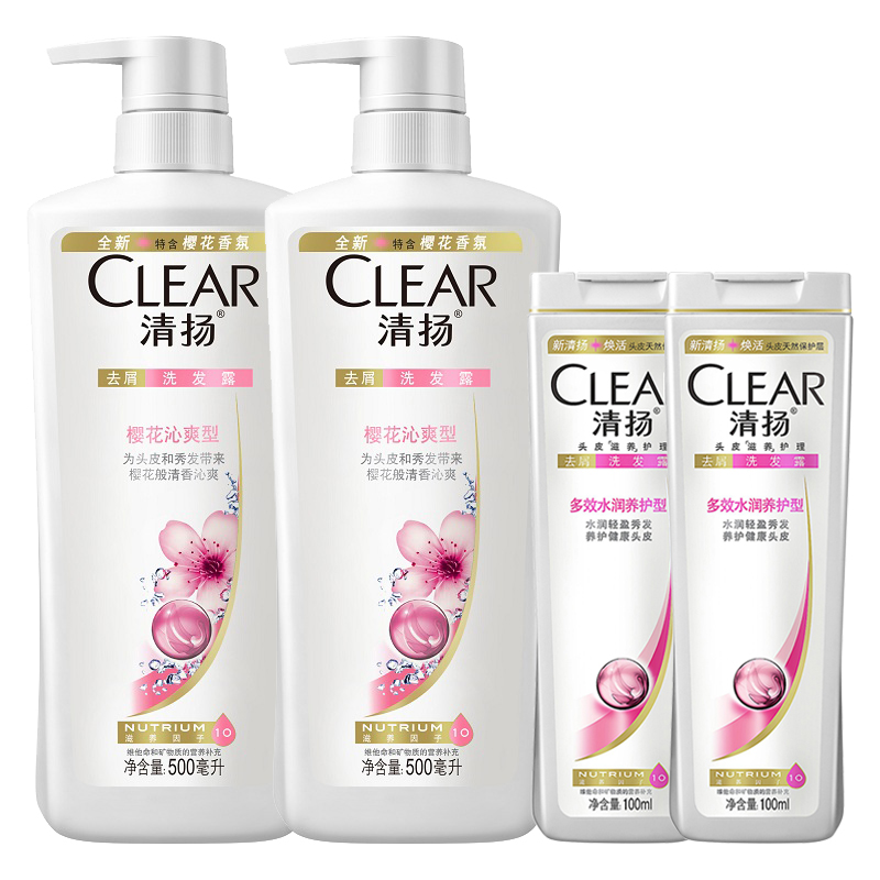 清扬去屑洗发水樱花沁爽型500ml洗发露套装赠100ml洗发水*2瓶