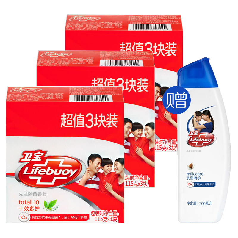 卫宝香皂先进抗菌香皂-十效多护115g*3块赠沐浴露200ml