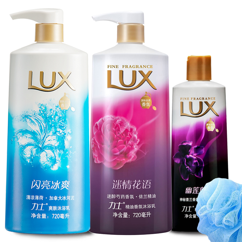 包邮 LUX/力士闪亮冰爽沐浴乳720ml+迷情花语720ml赠幽莲180ml