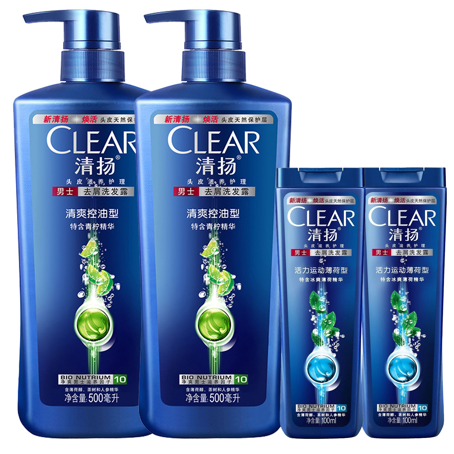 清扬男士去屑洗发水清爽控油型500ml洗发露套装赠100ml洗发水*2瓶