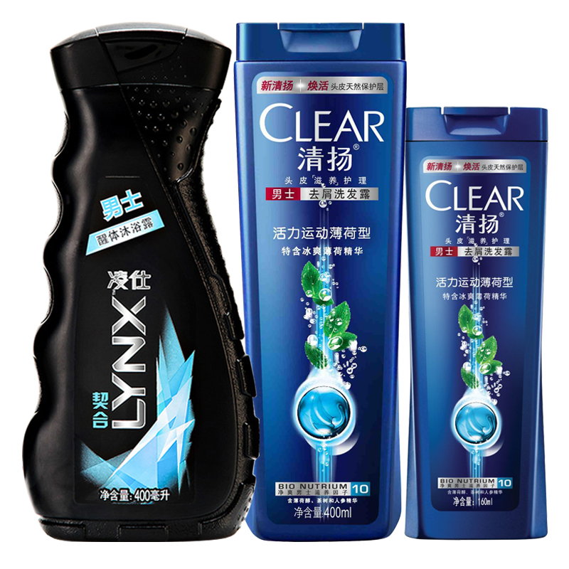 清扬男士去屑洗发水400ml运动薄荷型洗发露+凌仕男士沐浴露400ml