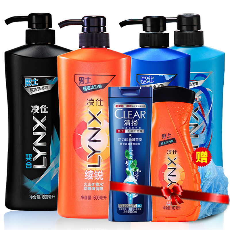 包邮 凌仕男士醒体香氛沐浴露契合600ml+续锐600ml套装赠清扬发水