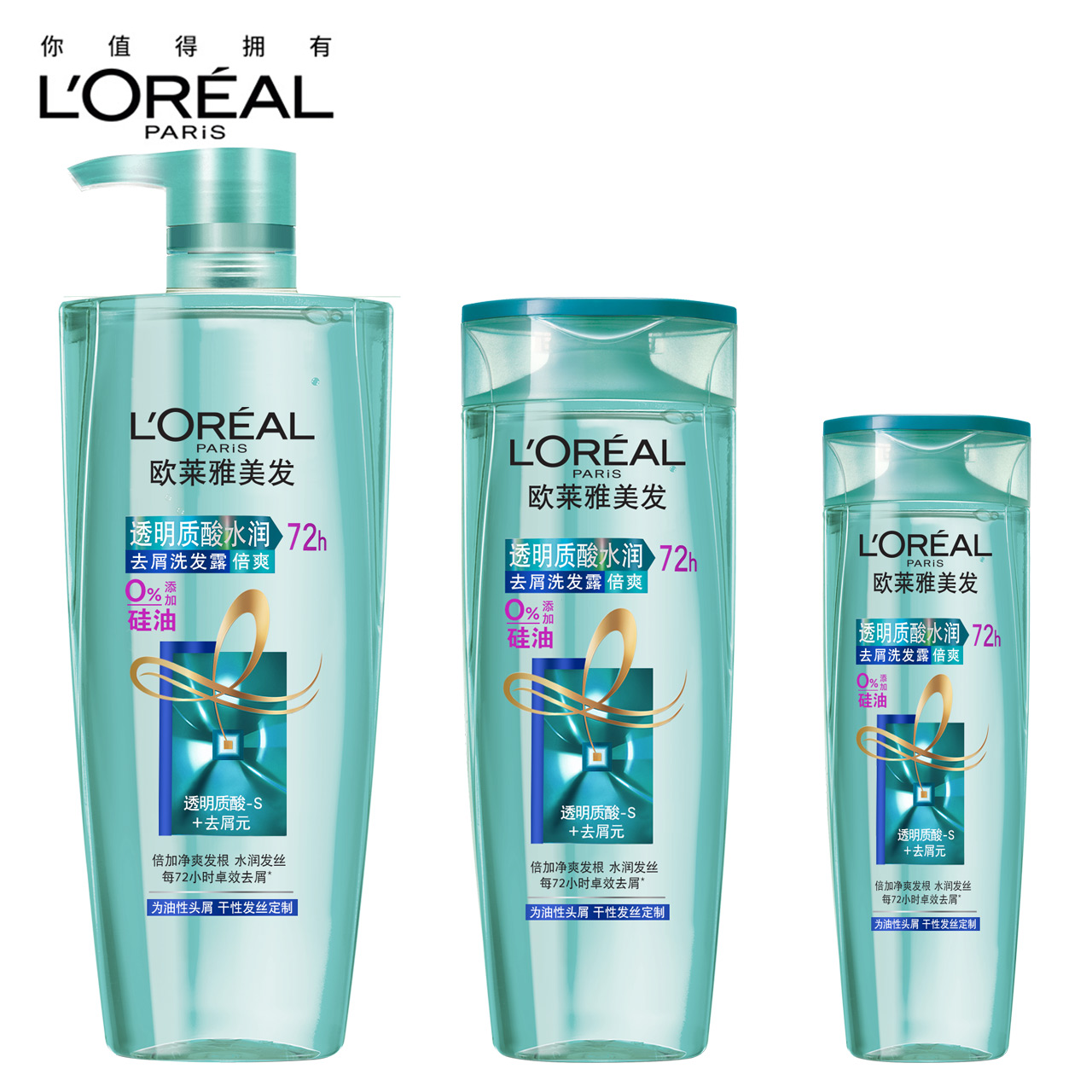 的热门产品L'OREAL欧莱雅透明质酸水润去屑洗发露(倍爽)200ml/400ml/700nl