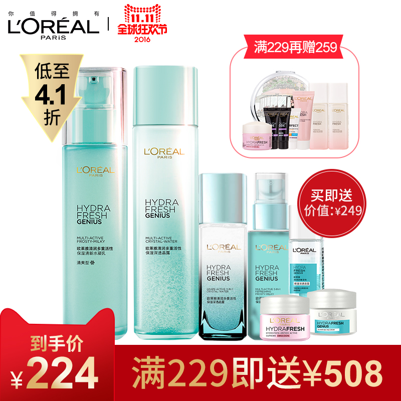 【11-11预售】欧莱雅清润保湿天才两件套女士化妆品套装 爽肤水