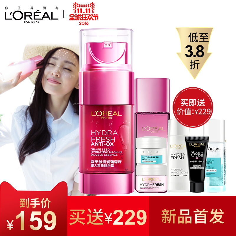 [11-11预售新品恋爱瓶]欧莱雅清润葡萄籽膜力双重精华露 补水保湿
