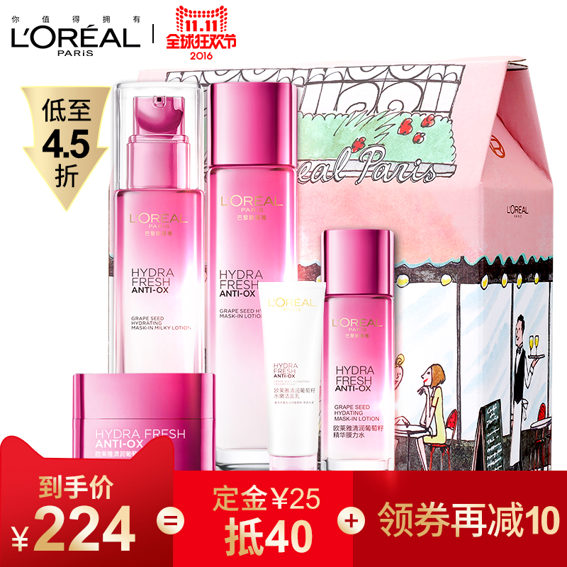 【11-11预售特供】欧莱雅膜力水乳液化妆品套装 限量咖啡馆礼盒