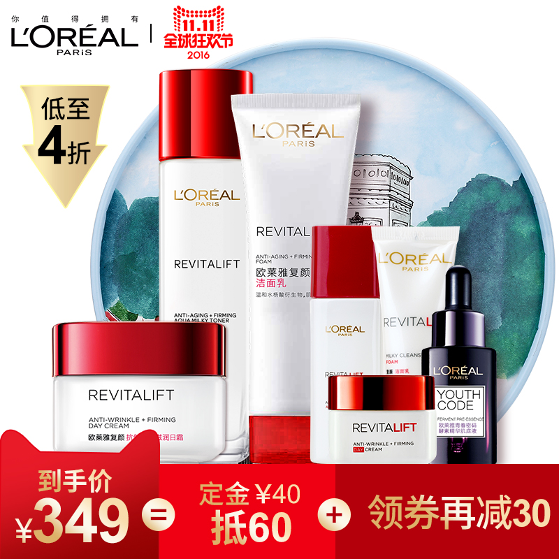[11-11预售特供巩俐同款]欧莱雅复颜抗皱限量凯旋礼盒化妆品7件套
