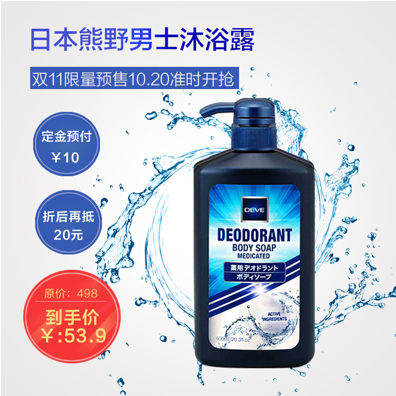 品牌:熊野油脂 型号:DEVE 男士药用DEODORANT沐浴露 是否量贩装:否 功能:滋润 深层清洁 抗菌消炎 清洁 净含量:600ml 查看全文