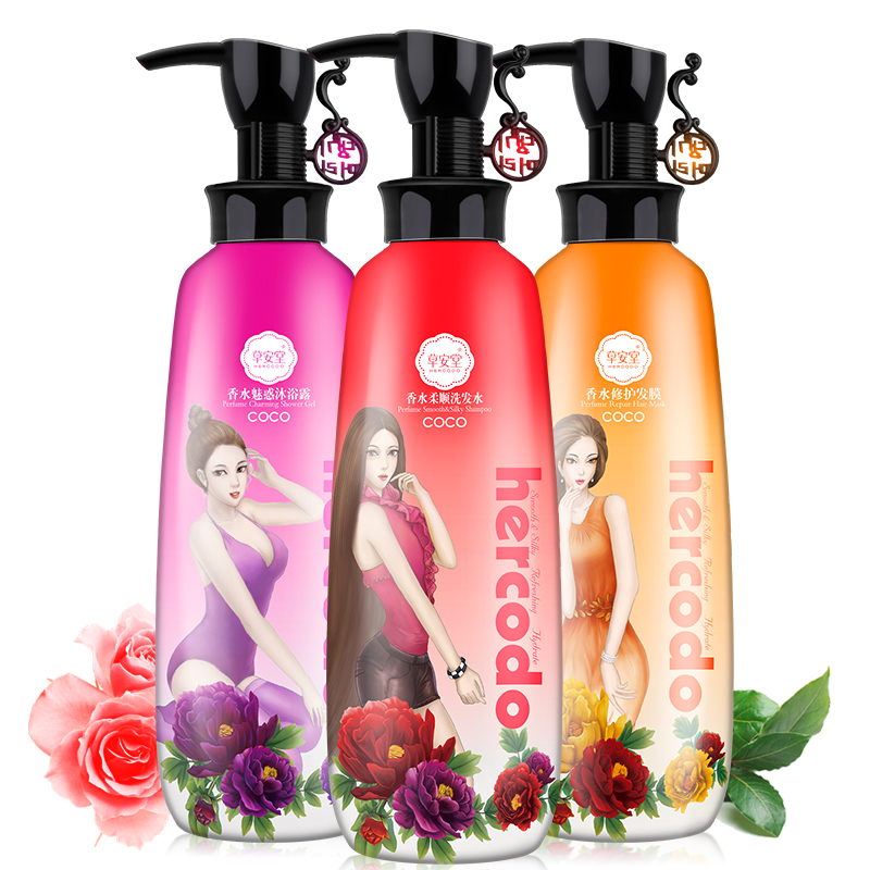 草安堂COCO香水洗发水500g+沐浴露500g+发膜500ml 男女洗护套装