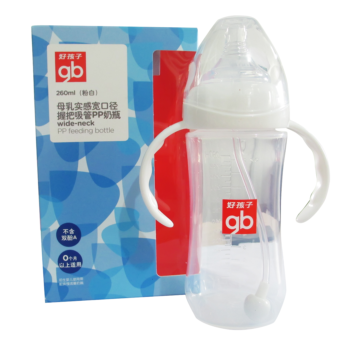 好孩子母乳实感宽口径吸管PP奶瓶260ml B80144/80143/80174/80160