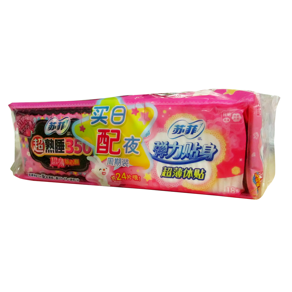 SOFY/苏菲超熟睡超薄350夜用4片+日用卫生巾18片+迷你2片 0120949