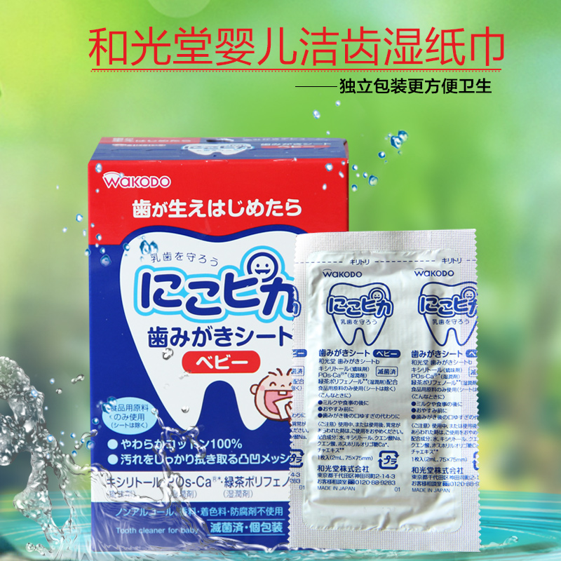 日本原装进口和光堂Wakodo 婴儿洁齿巾口腔湿巾洁齿湿纸巾30片装