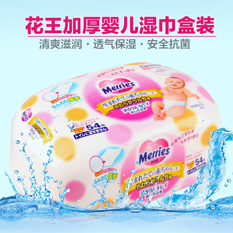 花王湿巾加厚型手体盒装湿巾柔湿巾54片盒装