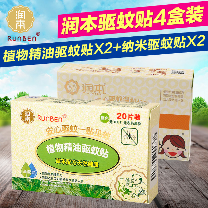 润本驱蚊贴婴幼儿孕妇宝宝驱蚊贴片纳米植物精油防蚊手环贴4盒装