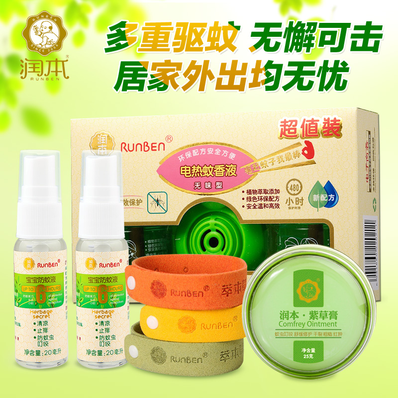 润本婴儿电热蚊香液/防蚊驱蚊液/紫草膏止痒/驱蚊手环 宝宝四件套