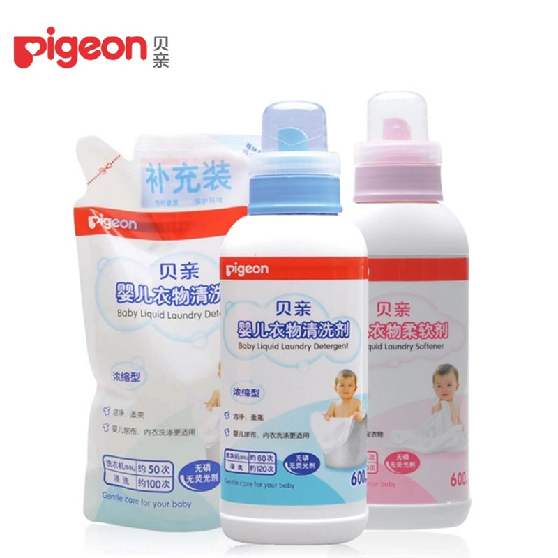 pigeon贝亲 婴儿衣物清洁液清洗剂袋装 洗衣柔顺柔软剂瓶装 套装