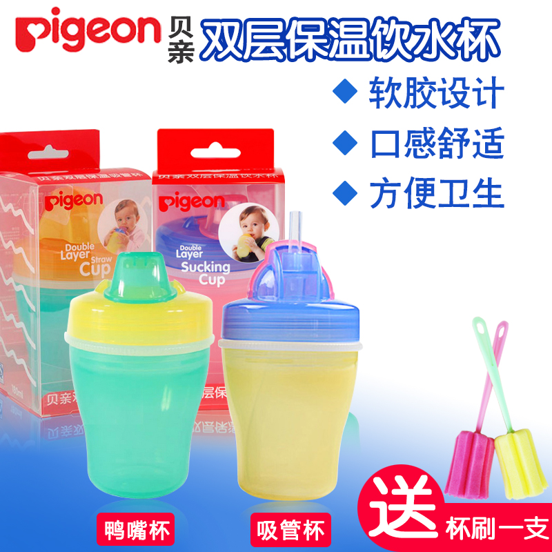 贝亲婴儿吸管杯 双层学饮杯 儿童鸭嘴杯 宝宝训练杯防漏水杯180ml