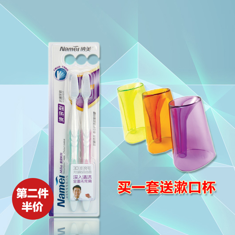 纳美纳米软毛牙刷波浪型刷毛2004牙缝清洁送漱口杯一个包邮