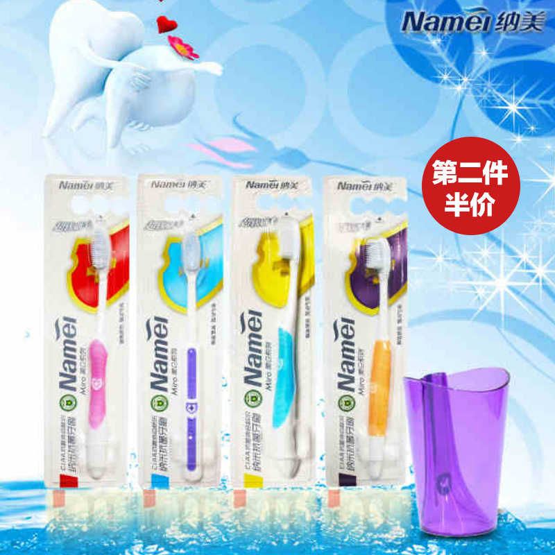 0.02mm纳美纳米超细软毛防出血护龈牙刷2003送漱口杯一个包邮