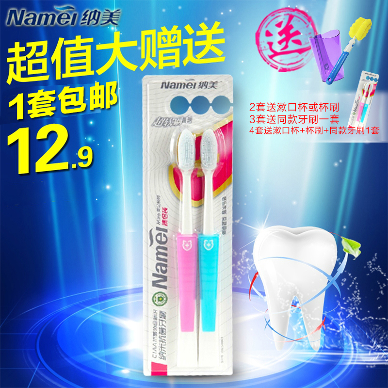 纳美纳米软毛防出血牙刷细毛【旅行情侣装1015一套2支】包邮