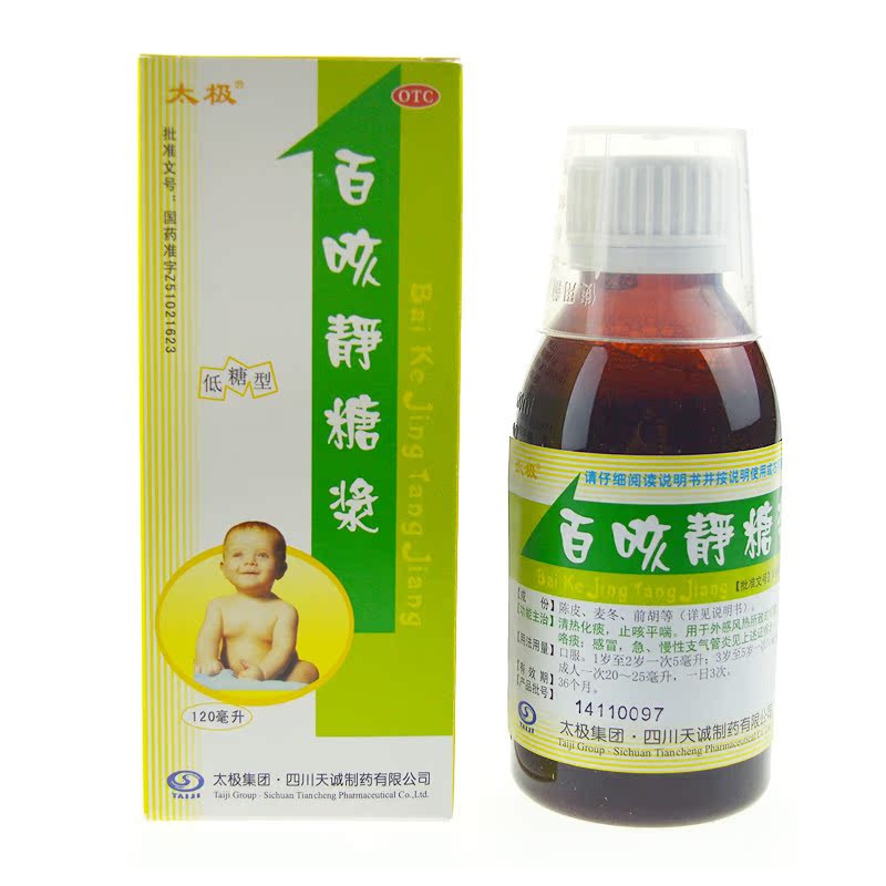适用人群:不限 药品分类:非处方药 用法:口服 有效期:36个月 产品剂型:口服液 类别:中药 品牌:太极 规格:120ml*1瓶/盒 疾病:风热感冒 症状:咳嗽.咳喘 药品名称:百咳静糖浆(低糖型) 药品通用名:百咳静糖浆(低糖型) 批准文号:国药准字z51021623 生产企业:太极集团四川天诚制药有限公司 使用剂量:成人一次20~25毫升,一日3次,小儿酌减 查看全文